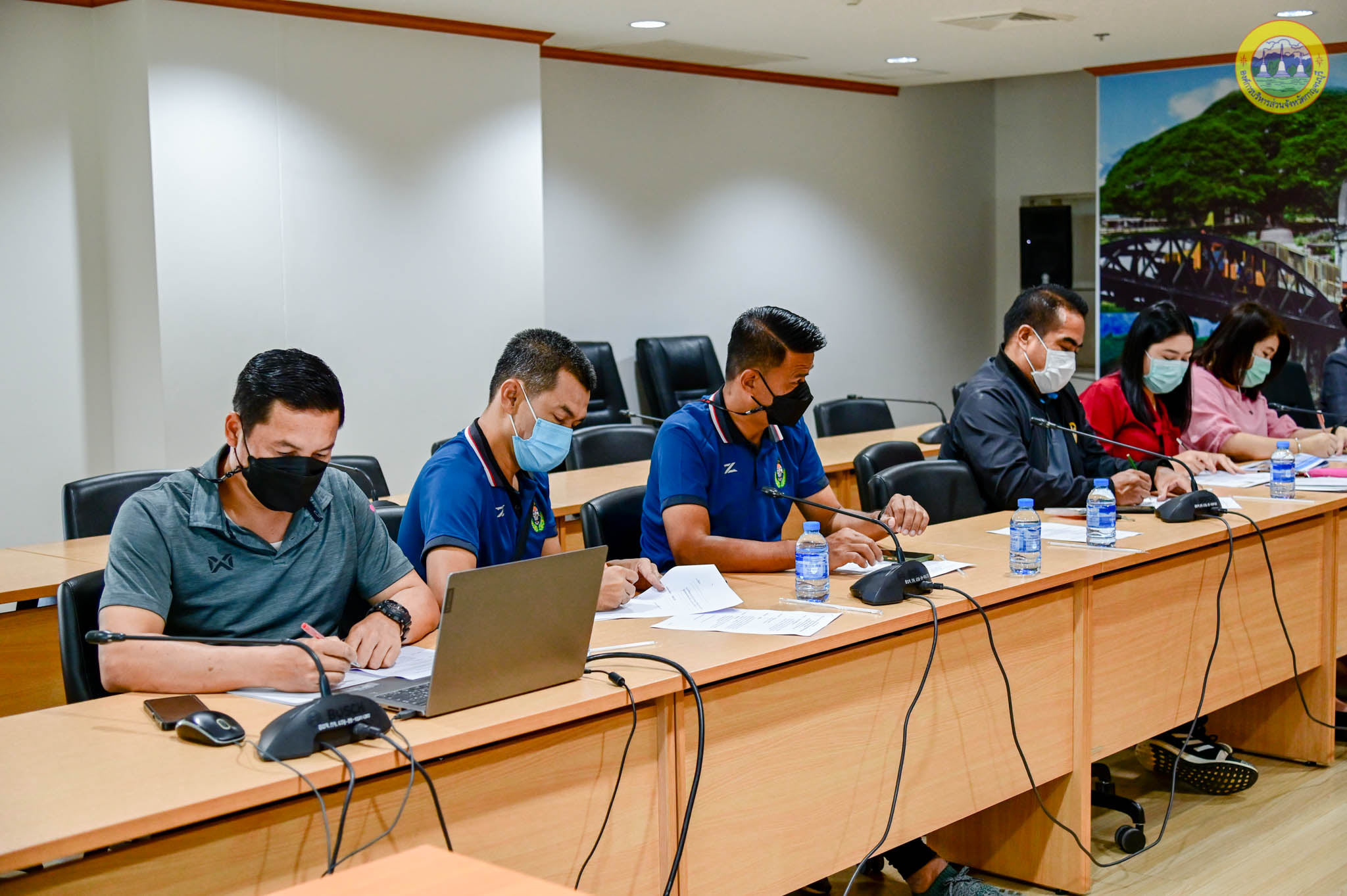 วันที่ 5 เมษายน 2565 เวลา 09.30 น. ที่ ห้องประชุมทับทิม 1 ชั้น 2 องค์การบริหารส่วนจังหวัดกาญจนบุรี นายสุรพงษ์ ปิยะโชติ นายกองค์การบริหารส่วนจังหวัดกาญจนบุรี มอบหมายนายชูศักดิ์ แม้นทิม รองนายกองค์การบริหารส่วนจังหวัดกาญจนบุรี เป็นประธานการประชุมวางแนวทางการดำเนินงานสนับสนุนนักกีฬาเข้าร่วมการแข่งขันกีฬาผู้สูงอายุแห่งประเทศไทย ครั้งที่ 14 ประจำปี 2565 “ทุ้งฟ้าเกมส์” โดยร่วมประชุมกับ นางสาวกิรดา ลำโครัตน์ ท่องเที่ยวและกีฬาจังหวัดกาญจนบุรี และคณะ เพื่อสนับสนุนนักกีฬาของจังหวัดกาญจนบุรี ให้ได้รับการอำนวยความสะดวกระหว่างการแข่งขันกีฬา เพิ่มคุณภาพชีวิตของผู้สูงอายุในจังหวัดกาญจนบุรี ตามนโยบายของนายสุรพงษ์ ปิยะโชติ นายกองค์การบริหารส่วนจังหวัดกาญจนบุรี