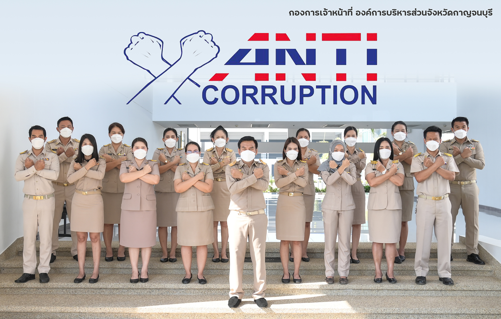 แสดงสัญลักษณ์ต่อต้านการทุจริตคอร์รัปชั่น ตามนโยบายต่อต้านการทุจริตของนายกองค์การบริหารส่วนจังหวัดกาญจนบุรี