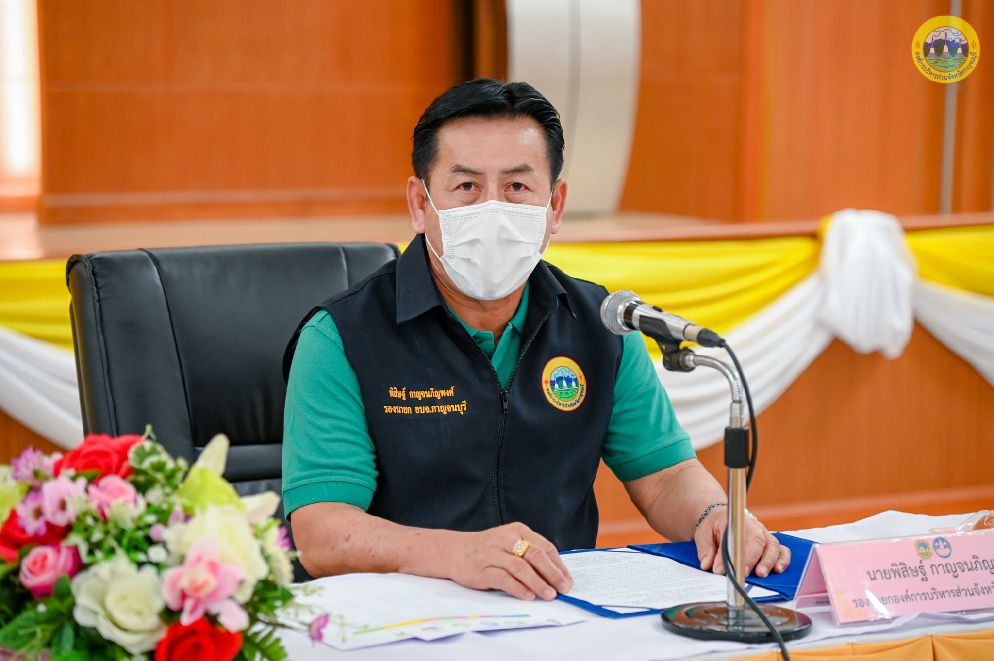 วันที่ ๒๖ เมษายน ๒๔๖๔ เวลา ๑๑.๐๐ น. ที่ห้องประชุมบุษราคัม องค์การบริหารส่วนจังหวัดกาญจนบุรี นายสุรพงษ์ ปิยะโชติ นายกองค์การบริหารส่วนจังหวัดกาญจนบุรี มอบหมายนายพิสิษฐ์ กาญจนภิญพงศ์ รองนายกองค์การบริหารส่วนจังหวัดกาญจนบุรี ให้โอวาท พูดคุย และมอบกำลังใจให้แก่นักกีฬา ผู้ฝึกซ้อม และเจ้าหน้าที่ที่เกี่ยวข้อง ที่จะเดินทางไปร่วมการแข่งขันกีฬาผู้สูงอายุแห่งประเทศไทย ครั้งที่ ๑๔ ประจำปี ๒๕๖๕ "ทุ้งฟ้าเกมส์" ในระหว่างวันที่ ๒ - ๕ พฤษภาคม ๒๕๖๕ ณ จังหวัดกระบี่ โดยมีนางกิรดา ลำโครัตน์ ผู้อำนวยการสำนักงานการท่องเที่ยวและกีฬา นำคณะนักกีฬา ผู้ฝึกซ้อม และเจ้าหน้าที่ที่เกี่ยวข้อง เข้ารับโอวาท พูดคุย และกล่าวขอบคุณ องค์การบริหารส่วนจังหวัดกาญจนบุรี ที่ให้การสนับสนุนในการร่วมแข่งขันในครั้งนี้