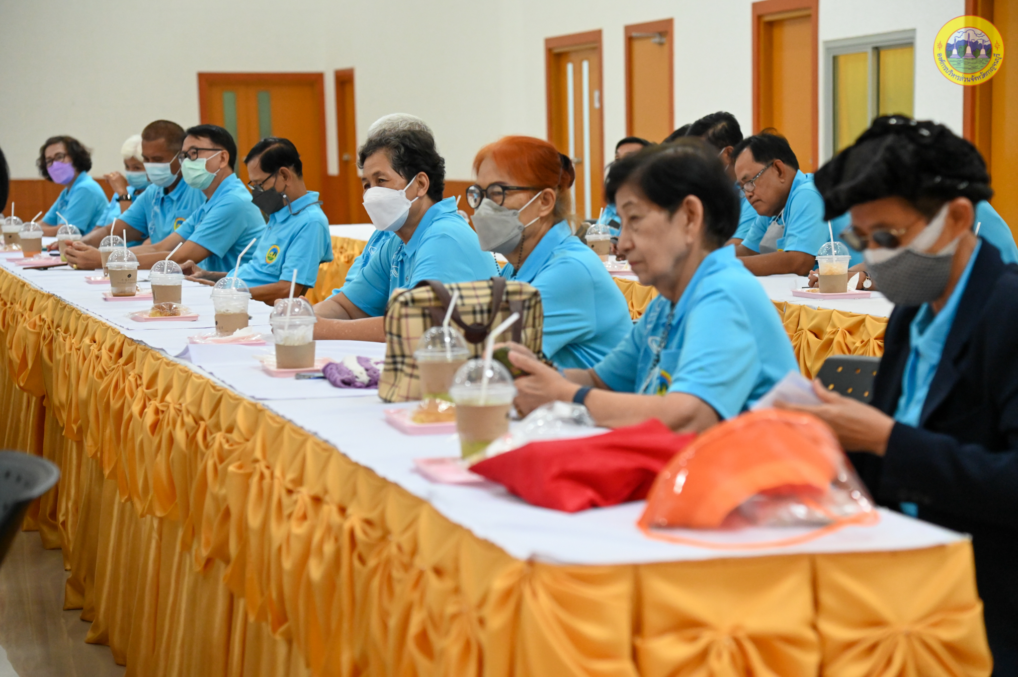 ให้โอวาท พูดคุย และมอบกำลังใจให้แก่นักกีฬา ผู้ฝึกซ้อม และเจ้าหน้าที่ที่เกี่ยวข้อง ที่จะเดินทางไปร่วมการแข่งขันกีฬาผู้สูงอายุแห่งประเทศไทย ครั้งที่ ๑๔