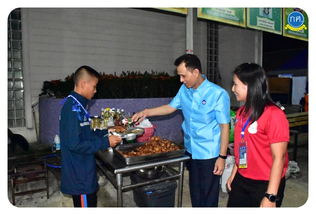 แวะเข้าเยี่ยมค่ายพักนักกีฬาของนักเรียนโรงเรียนในสังกัดของอบจ.กาญจนบุรี ทั้ง 2 โรงเรียน เพื่อพูดคุยสร้างกำลังใจ พร้อมมอบขนมและนมให้กองทัพนักกีฬาไว้เติมพลัง
