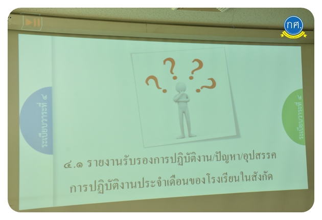 โดยให้คณะกรรมการจากโรงเรียนในสังกัดได้รายงานผลการปฏิบัติงาน/ปัญหาอุปสรรคในการปฏิบัติงานประจำแต่ละเดือนพร้อมรายงานผลติดตามโครงการ/กิจกรรมต่างๆ ที่ได้ดำเนินงานต่อคณะกรรมการฯ เพื่อให้การบริหารการจัดการศึกษาที่เกี่ยวข้องกับบริหารงบประมาณ การบริหารบุคคล การบริหารงานทั่วไป งานวิชาการและงานอื่นๆ ที่เกี่ยวข้องเป็นไปด้วยความเรียบร้อยและเกิดประสิทธิภาพสูงสุด ณ ห้องประชุมทับทิม 1 องค์การบริหารส่วนจังหวัดกาญจนบุรี