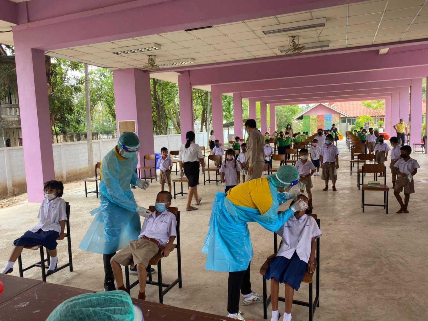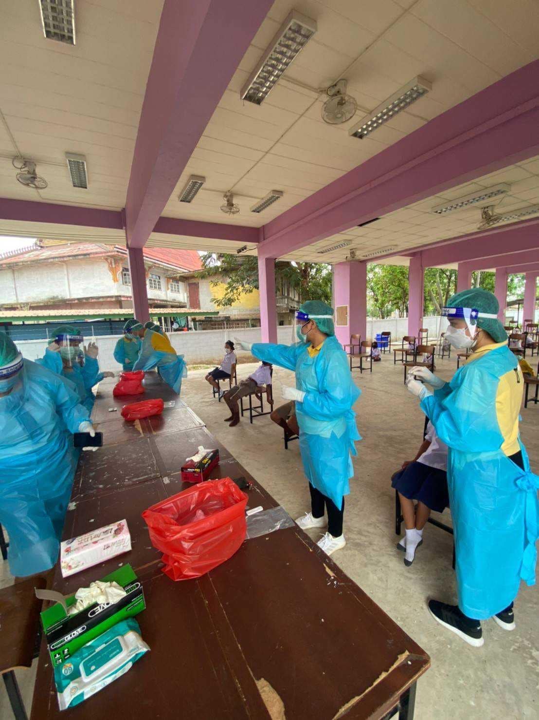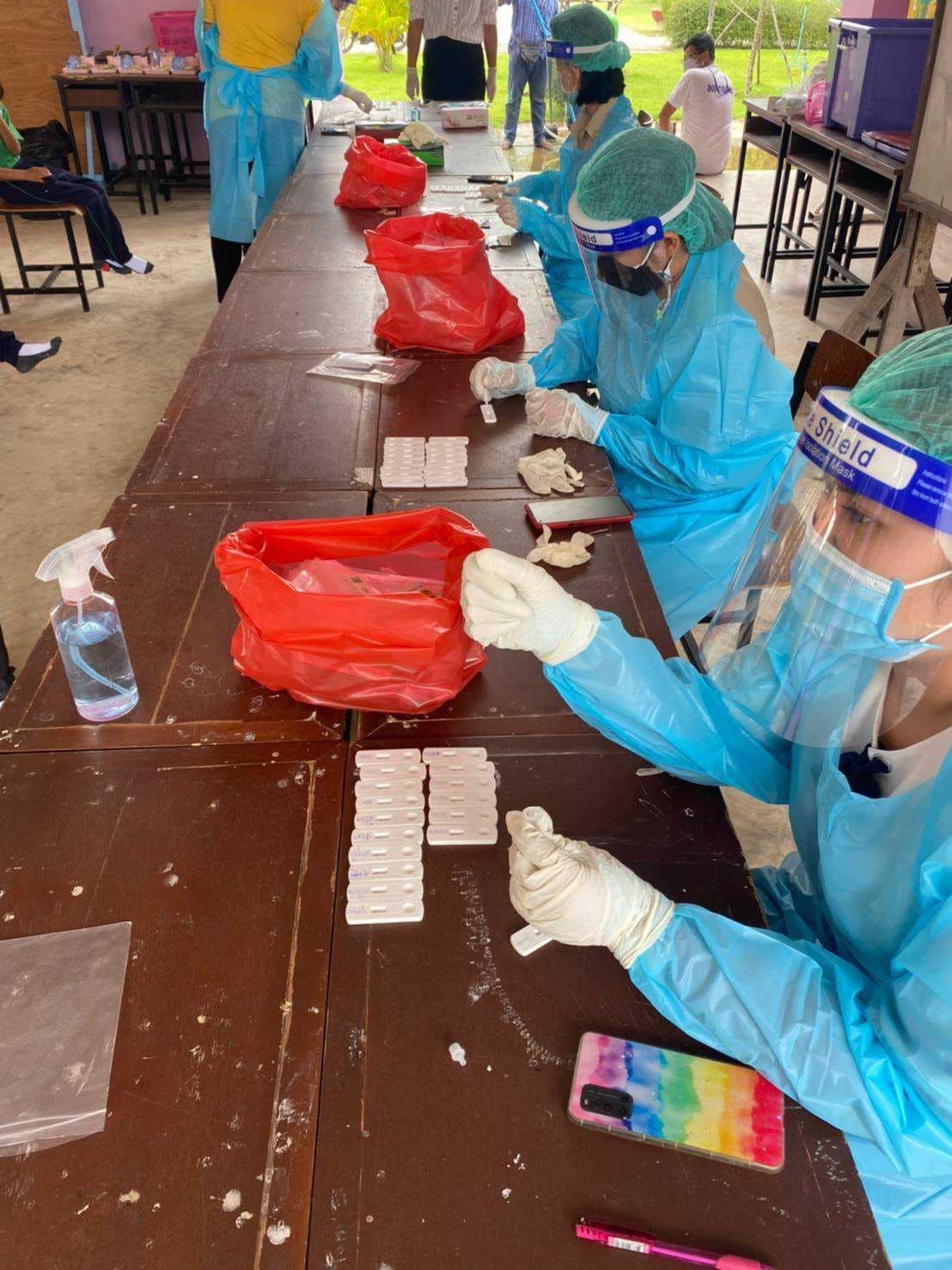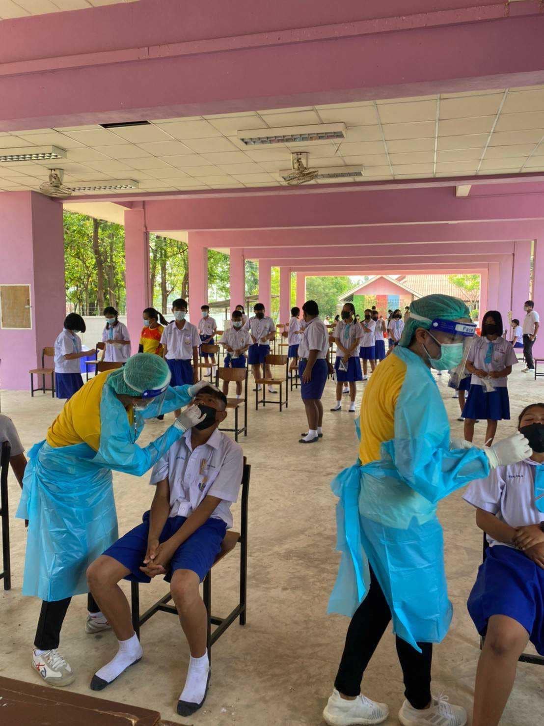 ตรวจคัดกรองเชื้อโควิด-19 ด้วยชุดตรวจ ATK ให้กับข้าราชการครู บุคลากรทางการศึกษา และนักเรียนโรงเรียน อบจ.กจ2(บ้านหนองอำเภอจีน)