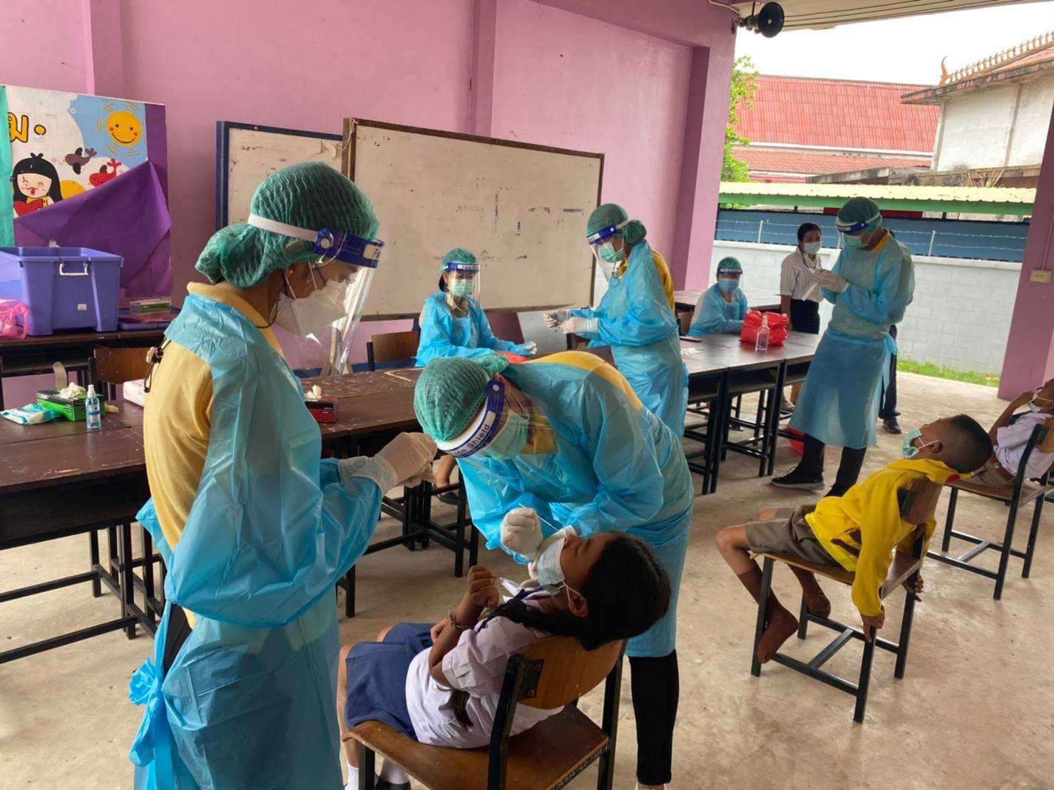 “เมื่อวันจันทร์ที่ 14 มีนาคม 2565 กองสาธารณสุขดำเนินการตรวจคัดกรองเชื้อโควิด-19 ด้วยชุดตรวจ ATK ให้กับข้าราชการครู บุคลากรทางการศึกษา และนักเรียนโรงเรียน อบจ.กจ2(บ้านหนองอำเภอจีน) เพื่อเฝ้าระวังและการค้นหาเชิงรุกให้กับนักเรียนและบุคลากรของโรงเรียน อบจ.กจ2 (บ้านหนองอำเภอจีน) ก่อนสอบปลายภาคเรียนที่สอง 2564 และสร้างความมั่นใจในการเฝ้าระวังป้องกันโรค