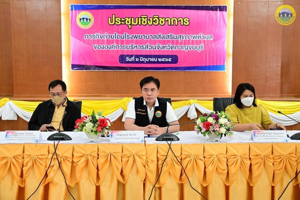 นายสุรพงษ์ ปิยะโชติ นายกองค์การบริหารส่วนจังหวัดกาญจนบุรี เป็นประธานการประชุมซักซ้อมการถ่ายโอนภารกิจโรงพยาบาลส่งเสริมสุขภาพตำบลให้แก่องค์การบริหารส่วนจังหวัดที่จะต้องดำเนินการในส่วนของความคืบหน้าแนวทางการส่งมอบโดยมีคณะผู้บริหาร สมาชิกสภาองค์การบริหารส่วนจังหวัด หัวหน้าส่วนราชการ ผู้แทนจากสำนักงานสาธารณสุขจังหวัดกาญจนบุรี ผู้แทนจากสำนักงานสาธารณสุขอำเภอ และผู้แทนจากโรงพยาบาลส่งเสริมสุขภาพตำบล เข้าร่วมประชุม ฯ โดยมีวิทยากรผู้ทรงคุณวุฒิ นายเลอพงศ์ ลิ้มรัตน์ ผู้ทรงคุณวุฒิในคณะกรรมการการกระจายอำนาจให้แก่องค์กรปกครองส่วนท้องถิ่น และประธานอนุกรรมการบริหารภารกิจถ่ายโอนด้านสาธารณสุขให้แก่องค์กรปกครองส่วนท้องถิ่น นางภัชร์จิรัสม์ ธัชเมฆรัตน์ หัวหน้ากลุ่มงานป้องกันโรคติดต่อ กองสาธารณสุขท้องถิ่น กรมส่งเสริมการปกครองท้องถิ่น พร้อมทั้งตอบข้อซักถาม ณ ห้องประชุมบุษราคัม ชั้น 1 องค์การบริหารส่วนจังหวัดกาญจนบุรี
