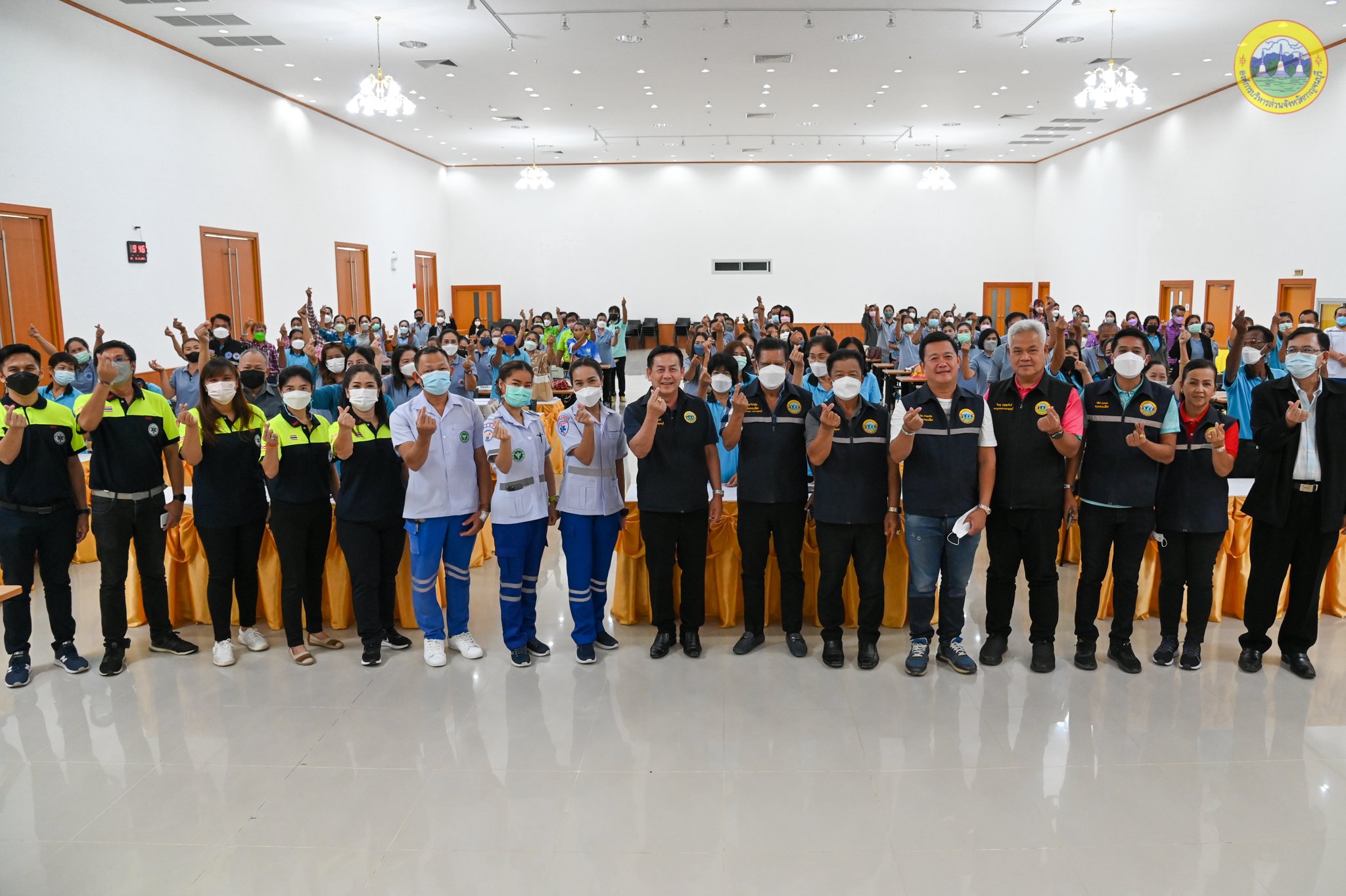 วันพุธที่ 15 มิถุนายน 2565 เวลา 09.00 น. นายสุรพงษ์ ปิยะโชติ นายกองค์การบริหารส่วนจังหวัดกาญจนบุรี มอบหมายให้นายพิสิษฐ์ กาญจนภิญพงศ์ รองนายกองค์การบริหารส่วนจังหวัดกาญจนบุรี และนายวิษณุ บุญญรัตน์ เลขานุการนายกองค์การบริหารส่วนจังหวัดกาญจนบุรี ร่วมพิธีเปิดโครงการพัฒนาศักยภาพบุคลากรเครือข่ายการแพทย์ฉุกเฉินจังหวัดกาญจนบุรี พ.ศ. 2565 "กิจกรรม อาสาฉุกเฉินชุมชนจังหวัดกาญจนบุรี" รุ่นที่ 1 อ.เมืองกาญจนบุรี โดยมีคณะผู้บริหารฯ สมาชิกสภาองค์การบริหารส่วนจังหวัดกาญจนบุรี เขตพื้นที่อำเภอเมืองกาญจนบุรี พร้อมด้วยหัวหน้าส่วนราชการเข้าร่วมพิธีเปิดอย่างพรัอมเพรียง