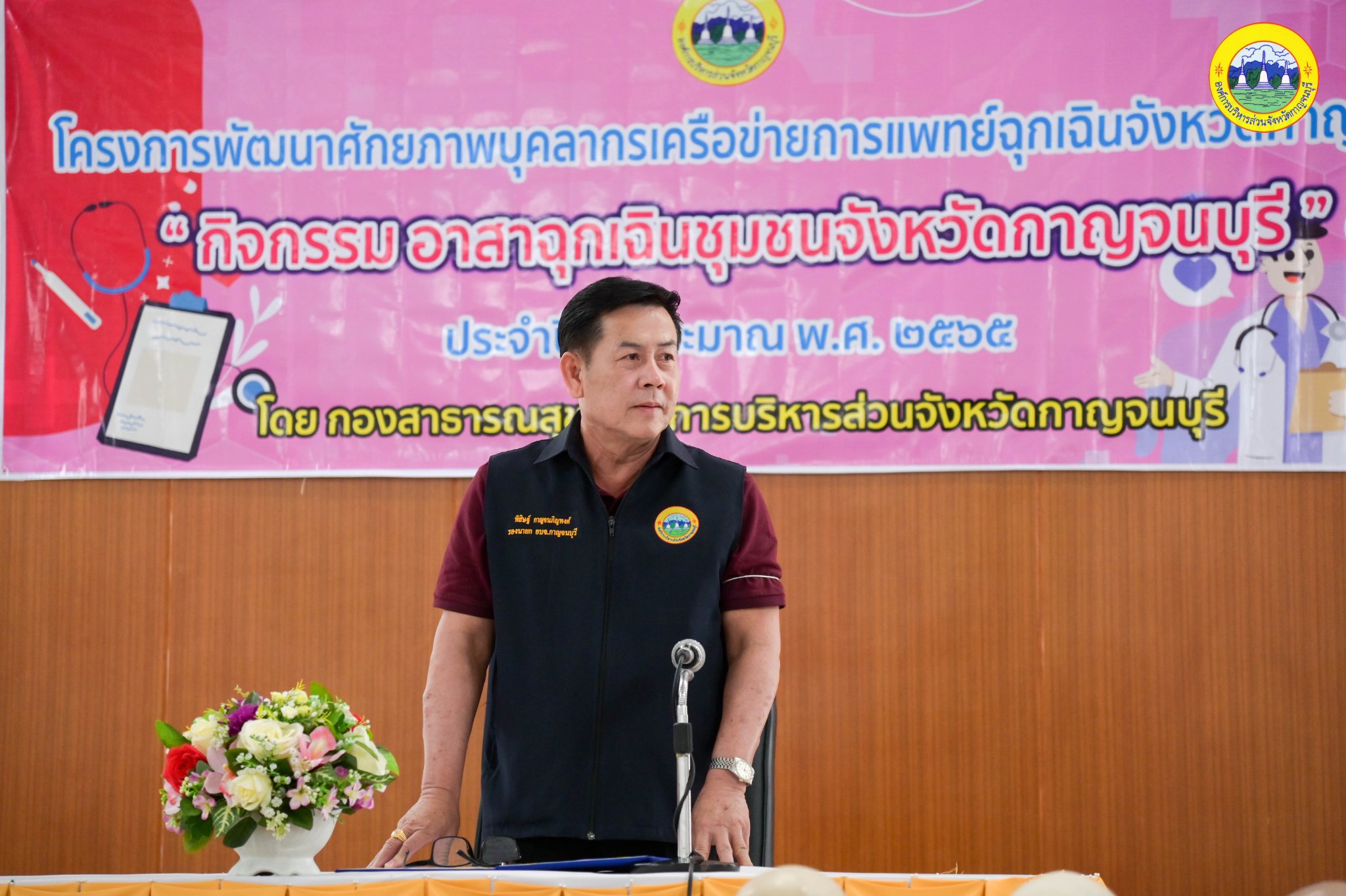 วันศุกร์ ที่ 17 มิถุนายน พ.ศ. 2565 เวลา 09.00 น. นายสุรพงษ์ ปิยะโชติ นายกองค์การบริหารส่วนจังหวัดกาญจนบุรี มอบหมายให้นายพิสิษฐ์ กาญจนภิญพงศ์ รองนายกองค์การบริหารส่วนจังหวัดกาญจนบุรี เป็นประธานในพิธีเปิดโครงการพัฒนาศักยภาพบุคลากรเครือข่ายการแพทย์ฉุกเฉินจังหวัดกาญจนบุรี พ.ศ. 2565 "กิจกรรม อาสาฉุกเฉินชุมชนจังหวัดกาญจนบุรี" รุ่นที่ 3 อ.เมืองกาญจนบุรี โดยมีนายวิษณุ บุญญรัตน์ เลขานุการนายกองค์การบริหารส่วนจังหวัดกาญจนบุรี และสมาชิกสภาองค์การบริหารส่วนจังหวัดกาญจนบุรี เขตพื้นที่อำเภอเมืองกาญจนบุรี พร้อมด้วยหัวหน้าส่วนราชการเข้าร่วมพิธีเปิดอย่างพรัอมเพรียง