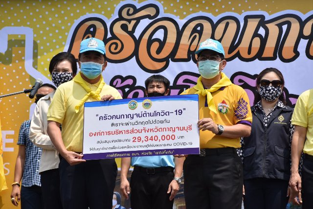 โดยมี นายจีระเกียรติ ภูมิสวัสดิ์ ผู้ว่าราชการจังหวัดกาญจนบุรี เป็นประธานเปิดโครงการ และนายบวรศักดิ์ วานิช รองผู้ว่าราชการจังหวัดกาญจนบุรี กล่าวรายงานวัตถุประสงค์ของการจัดโครงการฯ ซึ่งในครั้งนี้ องค์การบริหารส่วนจังหวัดกาญจนบุรีโดยนายรังสรรค์ รัศมีฤกษ์เศรษฐ์ นายกองค์การบริหารส่วนจังหวัดกาญจนบุรี ได้มอบงบประมาณสนับสนุนจำนวน 29,340,000 บาท ให้กับจังหวัดกาญจนบุรีเพื่อเป็นทุนตั้งต้นในการตั้งโรงครัวของทุกหมู่บ้านและชุมชน เพื่อให้การช่วยเหลือพี่น้องประชาชนที่เดือดร้อนให้มีอาหารรับประทาน ในช่วงของสถานการณ์ของการแพร่ระบาดไวรัสโคโรนา2019 (Covid–19)