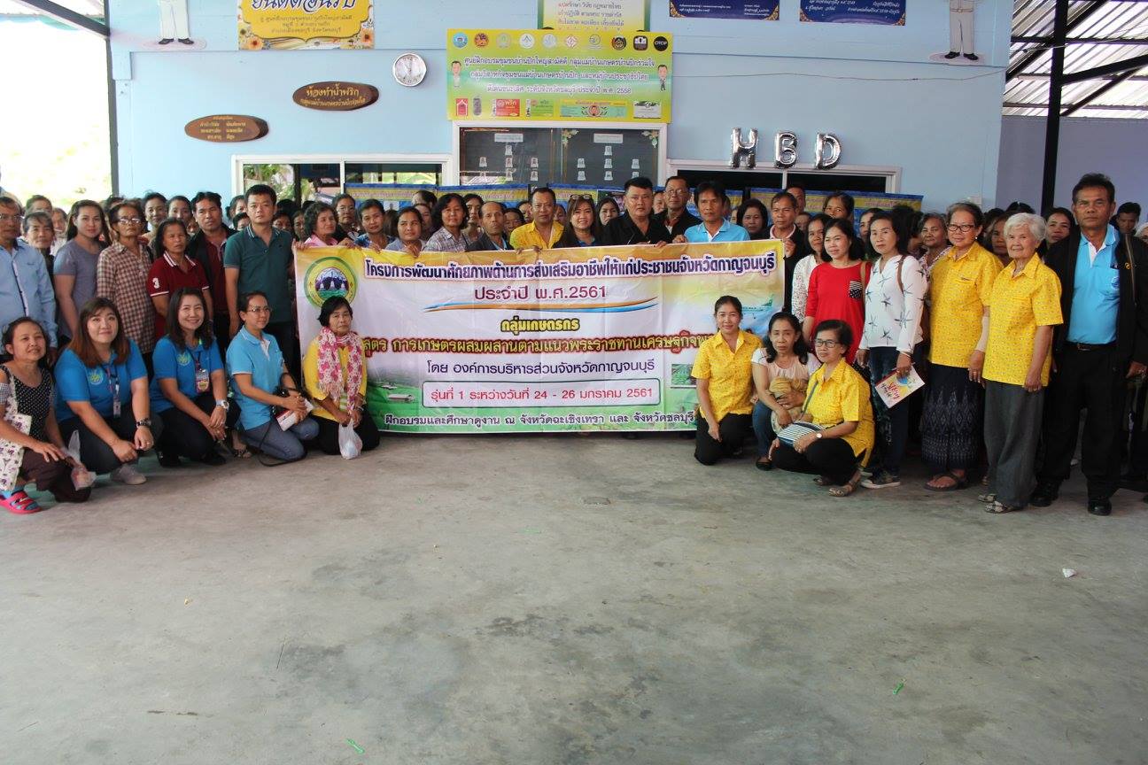 เมื่อวันที่ 24 – 26 มกราคม 2561 ที่ศูนย์ศึกษาการพัฒนาเขาหินซ้อน อันเนื่องมาจากพระราชดำริ ตำบลเขาหินซ้อน อำเภอพนมสาร จังหวัดฉะเซิงเทราและศูนย์ฝึกอบรมชุมชนบ้านปึก อำเภอเมืองชลบุรี จังหวัดชลบุรี นางจารีรัตน์ บุญประดิษฐ ผู้อำนวยการกองส่งเสริมคุณภาพชีวิตองค์การบริหารส่วนจังหวัดกาญจนบุรี เป็นประธานเปิดโครงการพัฒนาศักยภาพด้านการส่งเสริมอาชีพให้แก่ประชาชนจังหวัดกาญจนบุรี ประจำปี พ.ศ. 2561 กลุ่มเกษตรกร(หลักสูตร การเกษตรผสมผสานตามแนวพระราชทานเศรษฐกิจพอเพียง) การฝึกอบรมเชิงปฏิบัติการและศึกษาดูงาน ณ จังหวัดฉะเชิงเทรา และจังหวัดชลบุรี โดยโครงการดังกล่าวเพื่อขับเคลื่อนตามนโยบายของนายรังสรรค์ รัศมีฤกษ์เศรษฐ์ นายกองค์การบริหารส่วนจังหวัดกาญจนบุรี เพื่อส่งเสริมการเรียนรู้ให้เกษตรกรมีความรู้ในการเพิ่มผลผลิตและลดต้นทุนการผลิต พัฒนาองค์ความรู้ด้านการบริหารจัดการกลุ่ม การรวมกลุ่มให้เข้มแข็งและสร้างเครือข่ายกลุ่มเกษตรกรให้ครอบคลุมทั้งจังหวัดกาญจนบุรี สร้างความรู้ความเข้าใจให้กับเกษตรกรในการบริหารจัดการพื้นที่ทำการเกษตรอย่างเป็นระบบ และสามารถใช้หรือพัฒนาเทคโนโลยีทางการเกษตรที่เหมาะสมกับตน และส่งเสริมให้เกษตรกรเรียนรู้การทำไร่นาแบบผสมผสาน นำหลักปรัชญาเศรษฐกิจพอเพียงมาใช้ในการดำเนินชีวิต