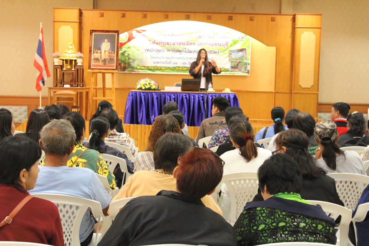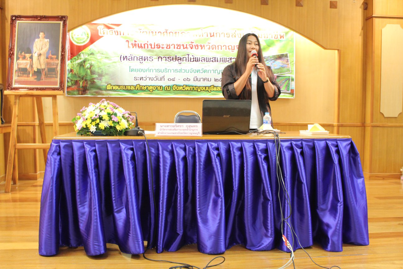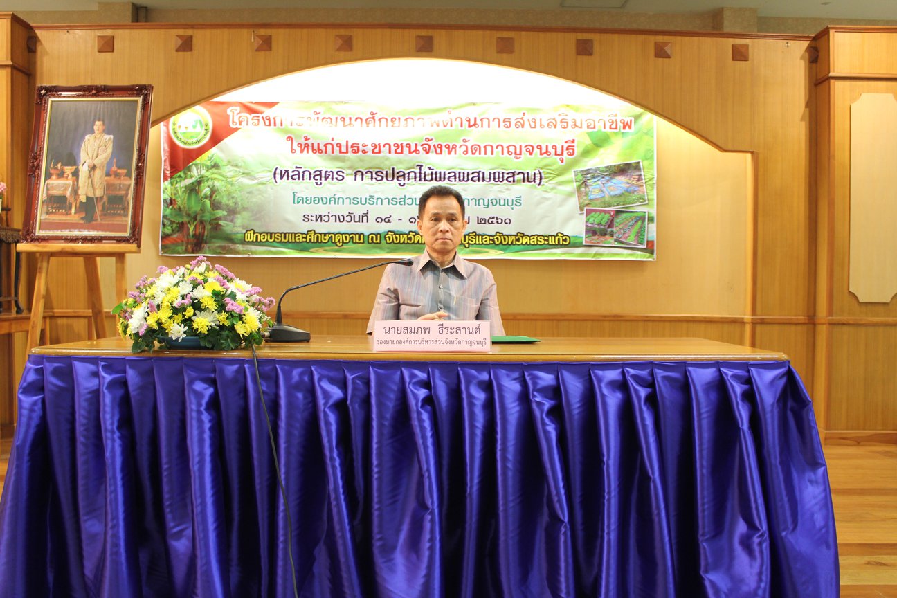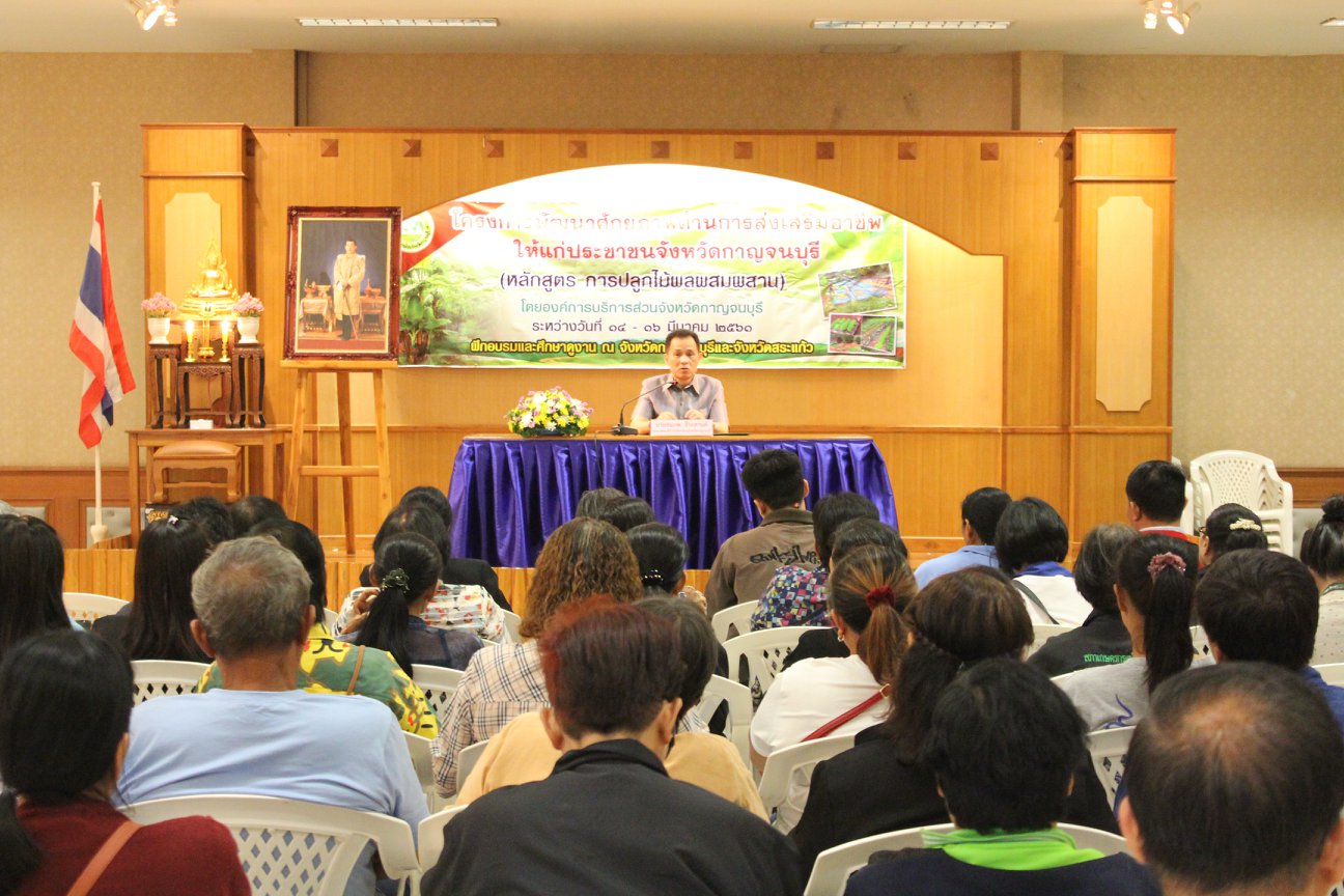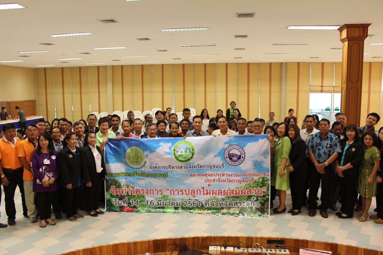 องค์การบริหารส่วนจังหวัดกาญจนบุรี ร่วมกับ สภาเกษตรกรจังหวัดกาญจนบุรีและสมาคมศูนย์ประสานงานองค์การเอกชนประจำจังหวัดกาญจนบุรี จัดโครงการพัฒนาศักยภาพด้านการส่งเสริมอาชีพให้แก่ประชาชนจังหวัดกาญจนบุรี หลักสูตร การปลูกไม้ผลผสมผสาน ประจำปีงบประมาณ 2561