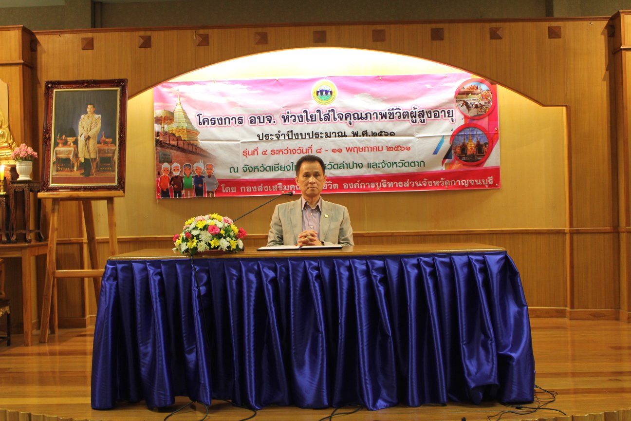 เมื่อวันที่ 8 พฤษภาคม 2561 (เวลา 15.00 น.) ที่ห้องประชุมร้านของฝากแม่บัวคำ ตำบลวังศาลา อำเภอท่าม่วง จังหวัดกาญจนบุรี นายสมภพ ธีระสานต์ รองนายกองค์การบริหารส่วนจังหวัดกาญจนบุรี เป็นประธานเปิดโครงการ อบจ. ห่วงใยใส่ใจคุณภาพชีวิตผู้สูงอายุ สำหรับการจัดโครงการดังกล่าว จัดขึ้นเพื่อส่งเสริมและพัฒนาศักยภาพของผู้สูงอายุให้มีความรู้ ความเข้าใจ ในด้านการดูแลร่างกายและจิตใจ ในรูปแบบใหม่ๆ ตลอดจนเป็นแนวทางการสร้างเครือข่าย การบูรณาการ การพัฒนาคุณภาพชีวิตผู้สูงอายุ ระหว่างหน่วยงานทั้งภาครัฐและเอกชน นอกจากนี้ยังเป็นการให้ผู้สูงอายุได้มีกิจกรรมร่วมกัน มีการพบปะแลกเปลี่ยน ประสบการณ์เพื่อเสริมสร้างสุขภาพ ชีวิต และรู้สึกมีคุณค่าในตนเอง และสามารถนำประโยชน์ที่ได้ในการฝึกอบรม ศึกษาดูไปปรับใช้ในชีวิตประจำวันให้เกิดประโยชน์ต่อท้องถิ่น และตนเองต่อไป โดยในโครงการจัดให้มีการฝึกอบรม และบรรยาย ในหัวข้อ “วิธีการเติมพลังสมองสำหรับผู้สูงอายุ” การดูแลสุขภาพ และวิธีห่างไกลโรคของผู้สูงอายุ ณ ห้องประชุมร้านของฝากแม่บัวคำ และศึกษาดูงาน ณ จังหวัดเชียงใหม่ จังหวัดลำปาง และจังหวัดตาก ซึ่งในครั้งนี้มีผู้เข้าร่วมโครงการ จำนวนทั้งสิ้น 200 คน